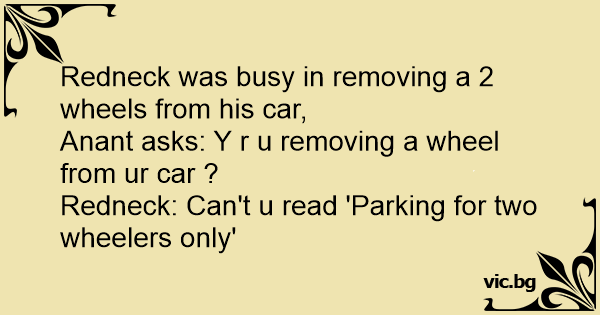Redneck: Can't u read 'Parking for two wheelers only'