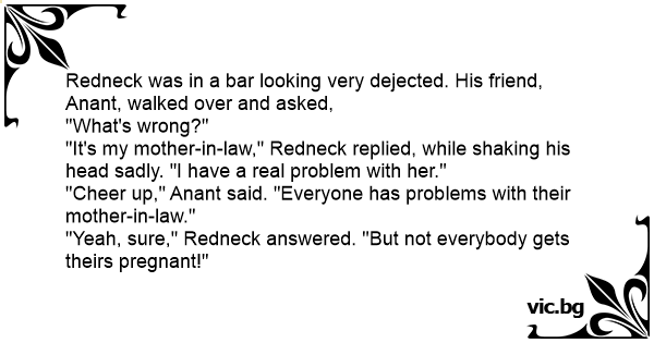 "It's my mother-in-law," Redneck replied, while shaking his head sadly. "I have a real problem with her."