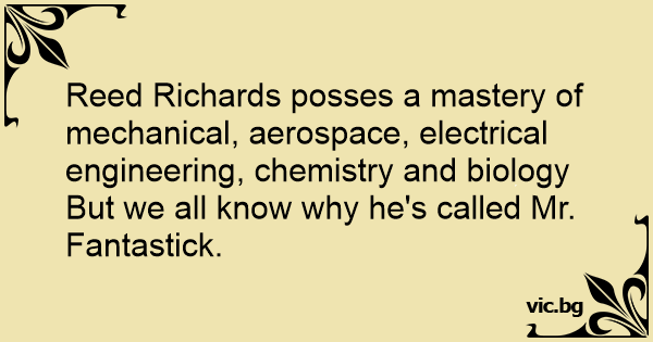 Reed Richards posses a mastery of mechanical, aerospace, electrical engineering, chemistry and biology