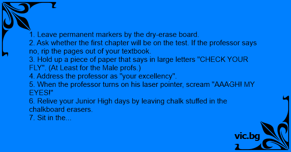 5. When the professor turns on his laser pointer, scream "AAAGH! MY EYES!"