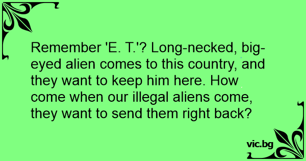 Remember 'E. T.'? Long-necked, big-eyed alien comes to this country, and they want to keep him here. How come when our illegal aliens come, they want to send them right back?
