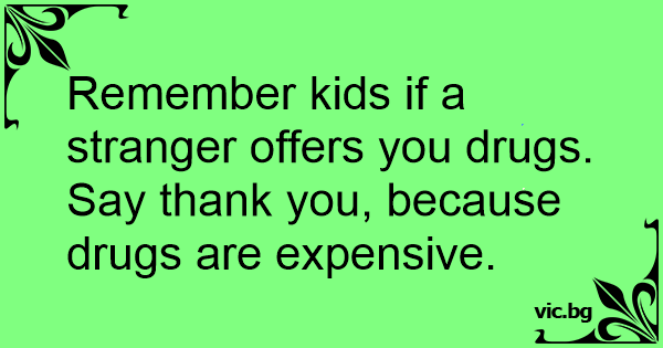 Remember kids if a stranger offers you drugs. Say thank you, because drugs are expensive.
