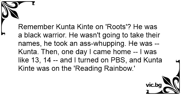 Remember Kunta Kinte on 'Roots'? He was a black warrior. He wasn't going to take their names, he took an аss-whupping. He was -- Kunta. Then, one day I came home -- I was like 13, 14 -- and I turned on PBS, and Kunta Kinte was on the 'Reading Rainbow.'