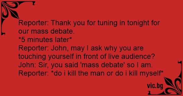 Reporter: Thank you for tuning in tonight for our mass debate.