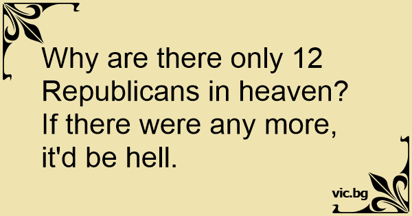 Why are there only 12 Republicans in heaven?<br />If there were any more, it'd be hеll.