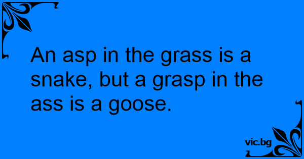 An asp in the grass is a snake, but a grasp in the аss is a goose.