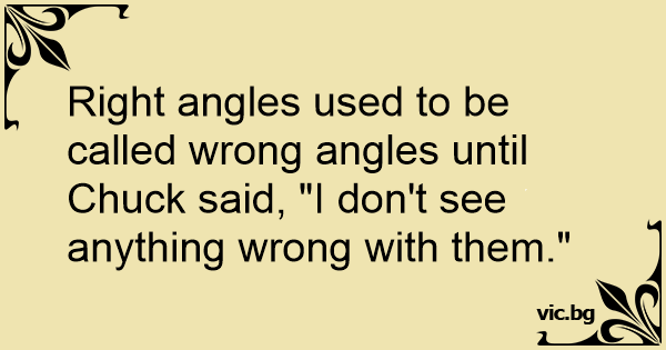 Right angles used to be called wrong angles until Chuck said, "I don't see anything wrong with them."