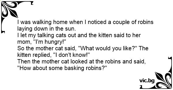 Then the mother cat looked at the robins and said, ''How about some basking robins?''