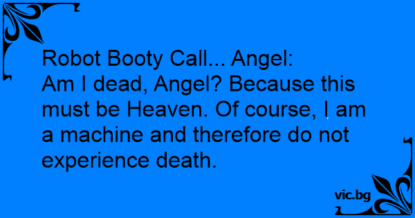 Am I dead, Angel? Because this must be Heaven. Of course, I am a machine and therefore do not experience death.