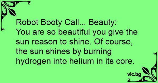 You are so beautiful you give the sun reason to shine. Of course, the sun shines by burning hydrogen into helium in its core.
