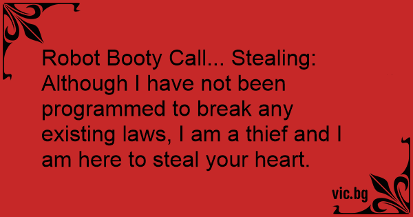Robot Воотy Call... Stealing:<br />Although I have not been programmed to break any existing laws, I am a thief and I am here to steal your heart.