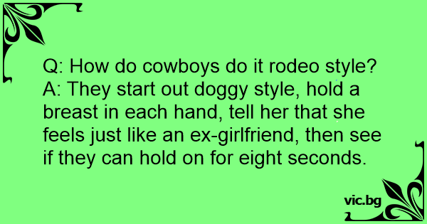 Two cowboys are out on the range talking about their favorite sex position. One says, "I think I enjoy the rodeo position the best." "I don't think I have ever heard of that one," says the other...