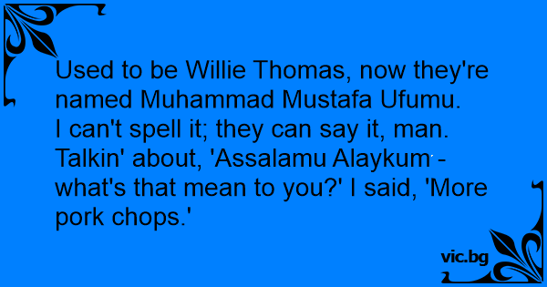 I can't spell it; they can say it, man. Talkin' about, 'Assalamu Alaykum - what's that mean to you?' I said, 'More pork chops.'
