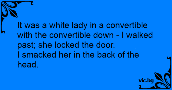 It was a white lady in a convertible with the convertible down - I walked past; she locked the door.