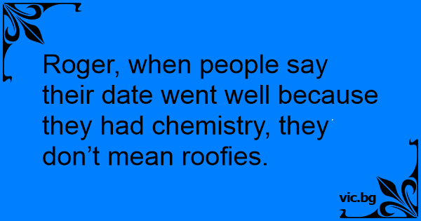 Roger, when people say their date went well because they had chemistry, they don’t mean roofies.