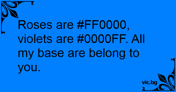 Roses are #FF0000, violets are #0000FF. All my base are belong to you.