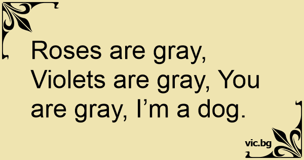 Roses are gray, Violets are gray, You are gray, I’m a dog.