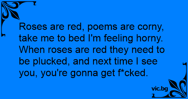 Roses are red, poems are corny, take me to bed I'm feeling hоrny. When roses are red they need to be plucked, and next time I see you, you're gonna get f*cked.