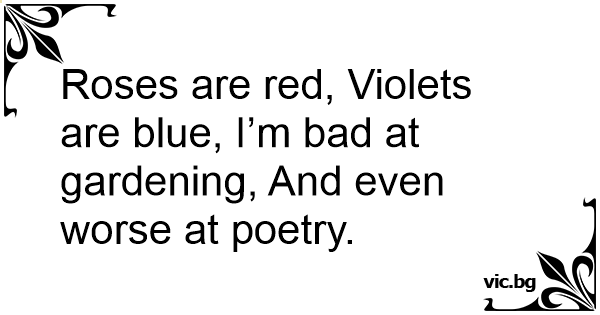 Roses are red, Violets are blue, I’m bad at gardening, And even worse at poetry.