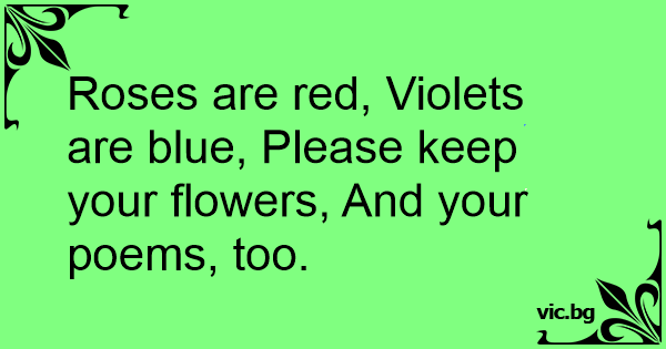 Roses are red, Violets are blue, Please keep your flowers, And your poems, too.