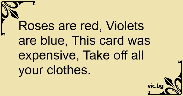 Roses are red, Violets are blue, This card was expensive, Take off all your clothes.