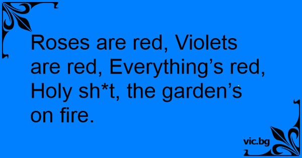 Roses are red, Violets are red, Everything’s red, Holy sh*t, the garden’s on fire.