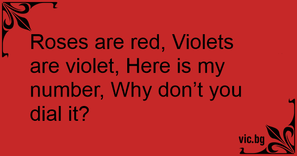 Roses are red, Violets are violet, Here is my number, Why don’t you dial it?