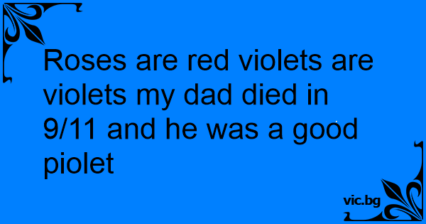 Roses are red violets are violets my dad died in 9/11 and he was a good piolet