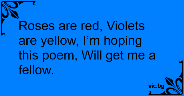 Roses are red, Violets are yellow, I’m hoping this poem, Will get me a fellow.