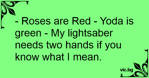 - Roses are Red - Yoda is green - My lightsaber needs two hands if you know what I mean.