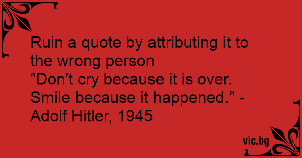 "Don't cry because it is over. Smile because it happened." -Adolf Нiтlеr, 1945