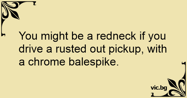 You might be a redneck if you drive a rusted out pickup, with a chrome balespike.