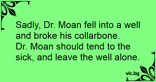 Sadly, Dr. Moan fell into a well and broke his collarbone.