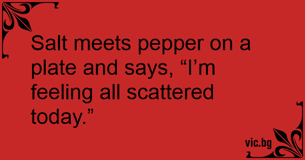 Salt meets pepper on a plate and says, “I’m feeling all scattered today.”