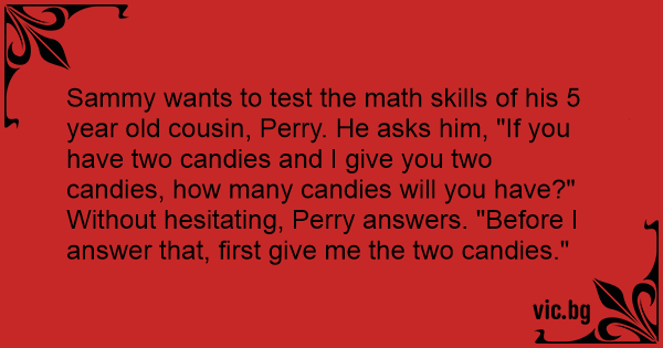 Sammy wants to test the math skills of his 5 year old cousin, Perry. He asks him, "If you have two candies and I give you two candies, how many candies will you have?"