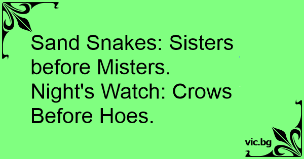 Night's Watch: Crows Before Hoes.