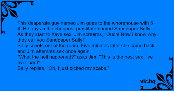 This desperate guy named Jim goes to the whоrеhоusе with 5$. He buys a the cheapest рrоsтiтuте named Sandpaper Sally.