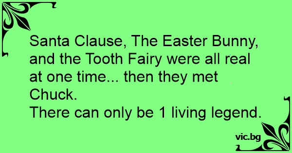 Santa Clause, The Easter Bunny, and the Tooth Fairy were all real at one time... then they met Chuck.