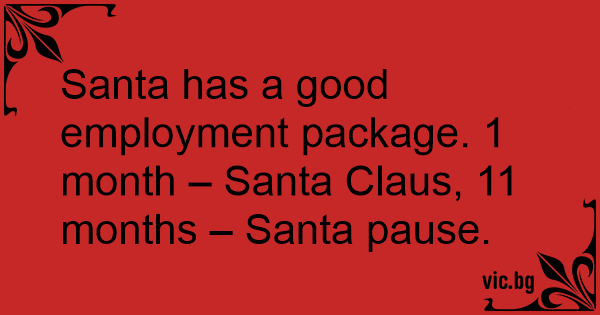 Santa has a good employment package. 1 month – Santa Claus, 11 months – Santa pause.