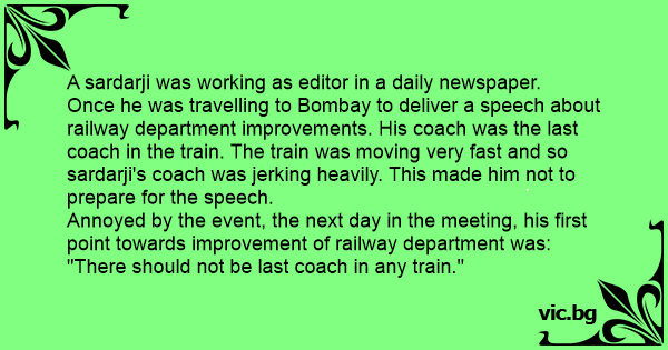 Once he was travelling to Bombay to deliver a speech about railway department improvements. His coach was the last coach in the train. The train was moving very fast and so sardarji's coach was jerking heavily. This made him not to prepare for the speech.