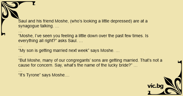Saul and his friend Moshe, (who’s looking a little depressed) are at a synagogue talking. …