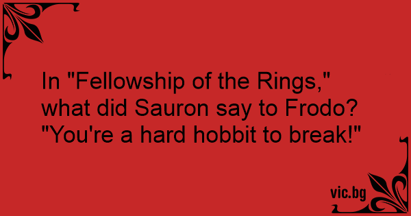 In "Fellowship of the Rings," what did Sauron say to Frodo?"You're a hard hobbit to break!" 0 0 0 Celebrity and Pop Culture Jokes