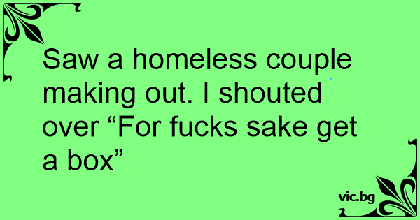 Saw a homeless couple making out. I shouted over “For fuскs sake get a box”