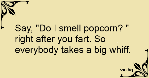 Say, "Do I smell popcorn? " right after you fаrт. So everybody takes a big whiff.