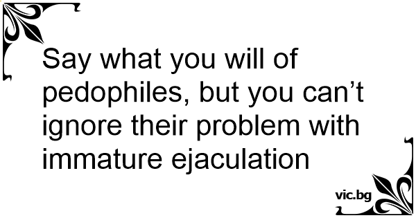 Say what you will of pedophiles, but you can’t ignore their problem with immature ejaculation