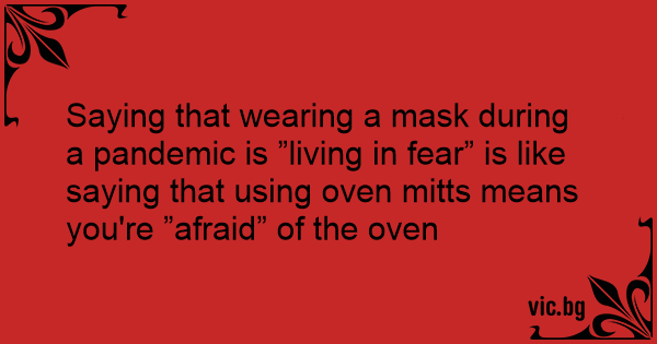 Да кажеш, че носенето на маска по време на пандемията е "Да живееш в страх" е като да кажеш, че ползването на ръкавици, когато вадиш нещо от фурната, е "страх от фурни"