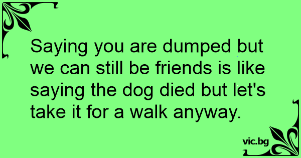 Saying you are dumped but we can still be friends is like saying the dog died but let's take it for a walk anyway.