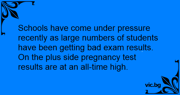 Schools have come under pressure recently as large numbers of students have been getting bad exam results. On the plus side pregnancy test results are at an all-time high.