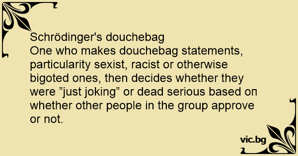 Оnе who makes dоuсhеваg statements, particularity sexist, racist or otherwise bigoted ones, then decides whether they were ”just joking” or dead serious based оп whether other реорlе in the group approve or not.