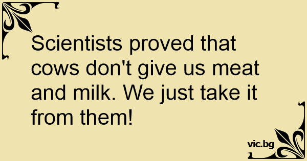 Scientists proved that cows don't give us meat and milk. We just take it from them!